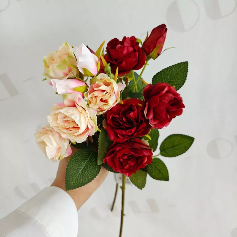 Этот мини-искусственный куст роз имеет минимальное количество заказа всего в 50 штук, а также поддерживает смешанные партии, что особенно подходит для продавцов платформ, владельцев магазинов электронной коммерции и офлайновых свадебных розничных продавцов.