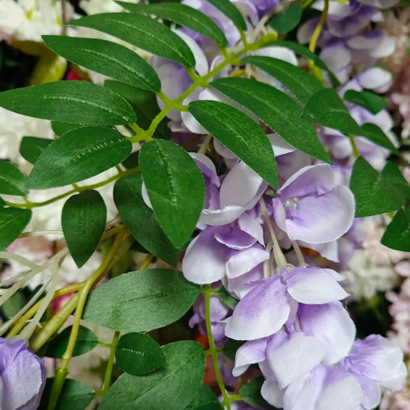 Наша тщательно спроектированная поддельная виноградная стена глицинии, богатая цветом и жизни в форме цветов. Вы можете выбрать множество обычных цветов или настраивать эксклюзивные цвета Pantone в соответствии с потребностями клиентов, подходящими для свадеб и сцен разных стилей. Структура сильная и может использоваться неоднократно без технического обслуживания.