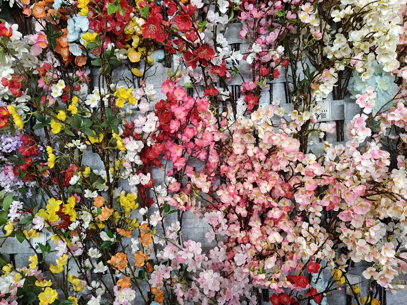 Как только мы входим в комнату для образцов, первое, что нас приветствует, этоИскусственная вишняПолем Наши текущие филиалы вишневой цветы доступны в различных размерах и материалах, таких как:
